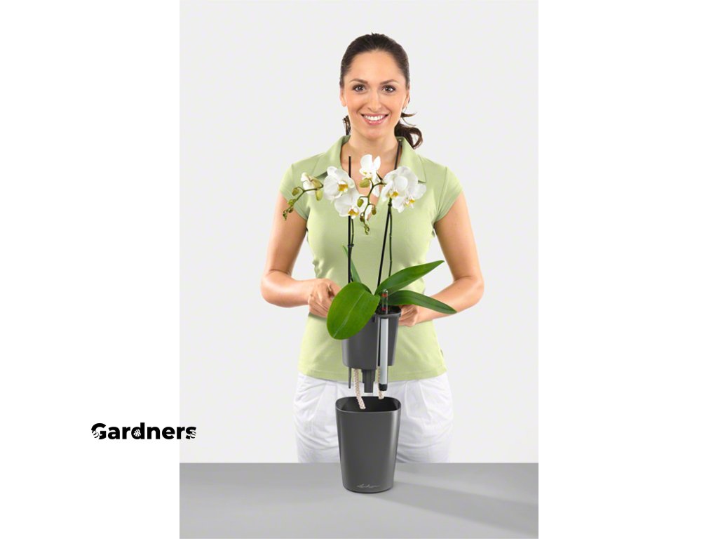 Samozavlažovací květináč Deltini Premium, průměr 14 cm, antracitová