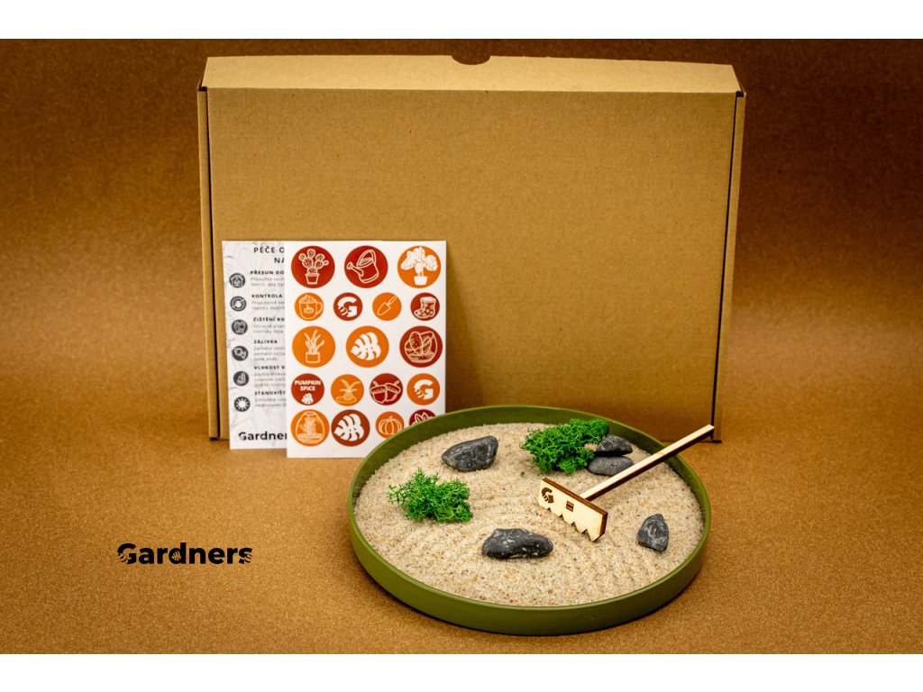 Darujte klid a podzimní kouzlo v jednom. V naší podzimní dárkové sadě najdete zenovou zahrádku, která vnese do interiéru orientální nádech a stane se malým ostrůvkem klidu. Stačí pár minut tvarování písku a okamžitě pocítíte, jak se zpomaluje tempo a přichází uvolnění. Skvěle se hodí na pracovní stůl i do domácího koutku pohody.